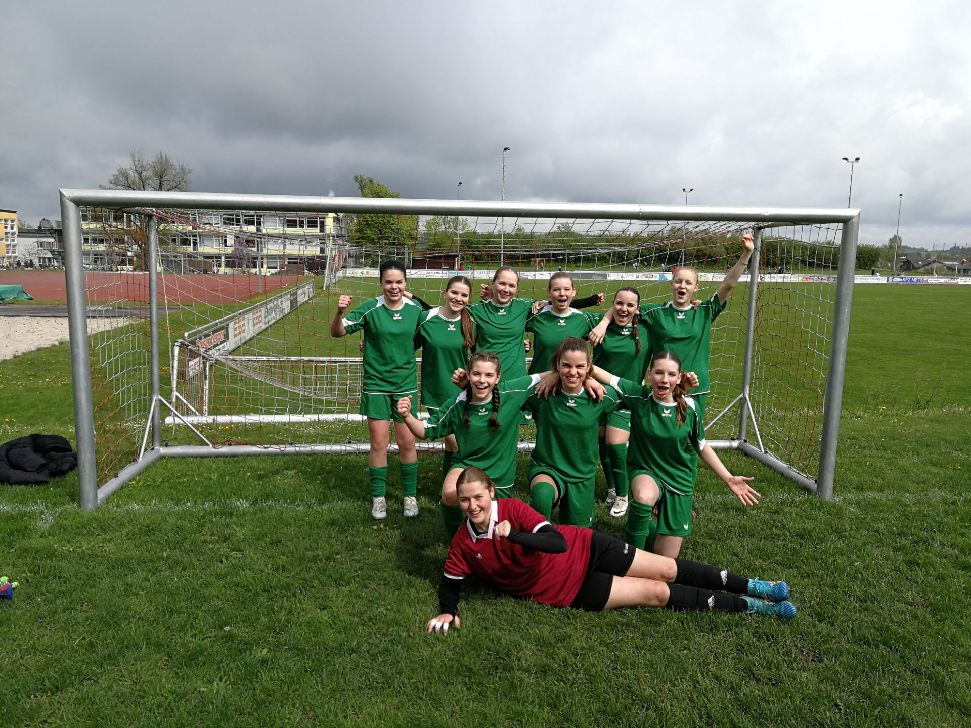 Im ersten Spiel gegen das Gymnasium Mühldorf schafften es die Mädchen, der siebten bis neunten Klasse, schnell in Führung zu gehen. Durch gutes Zusammenspiel und eine dominante Spielweise konnte die Führung ausgebaut werden. Mit einem Spielstand von 5:0 entschieden die Fußballerinnen das Spiel für sich.