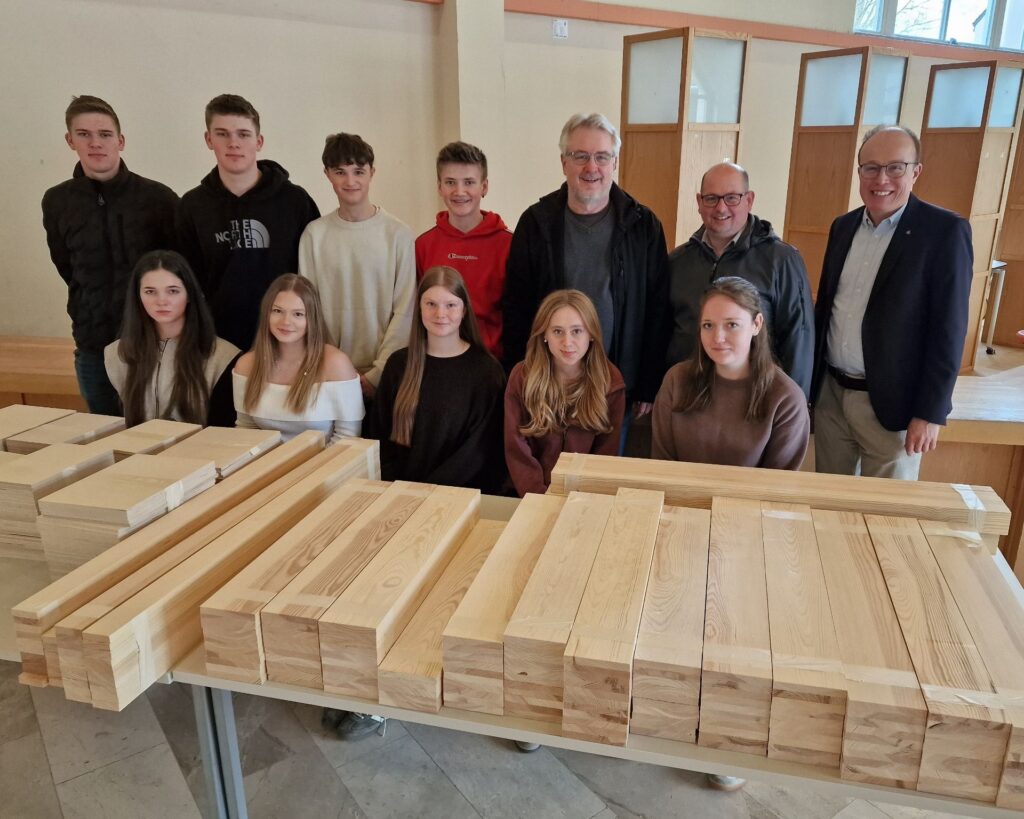 Durch die Materialspende gewährleistet die Firma zudem, daß das von den Werkschülern zu entrichtende Werkgeld seit Jahren (trotz Inflation, Lieferkettenengpässen, …) gleich bleibt.