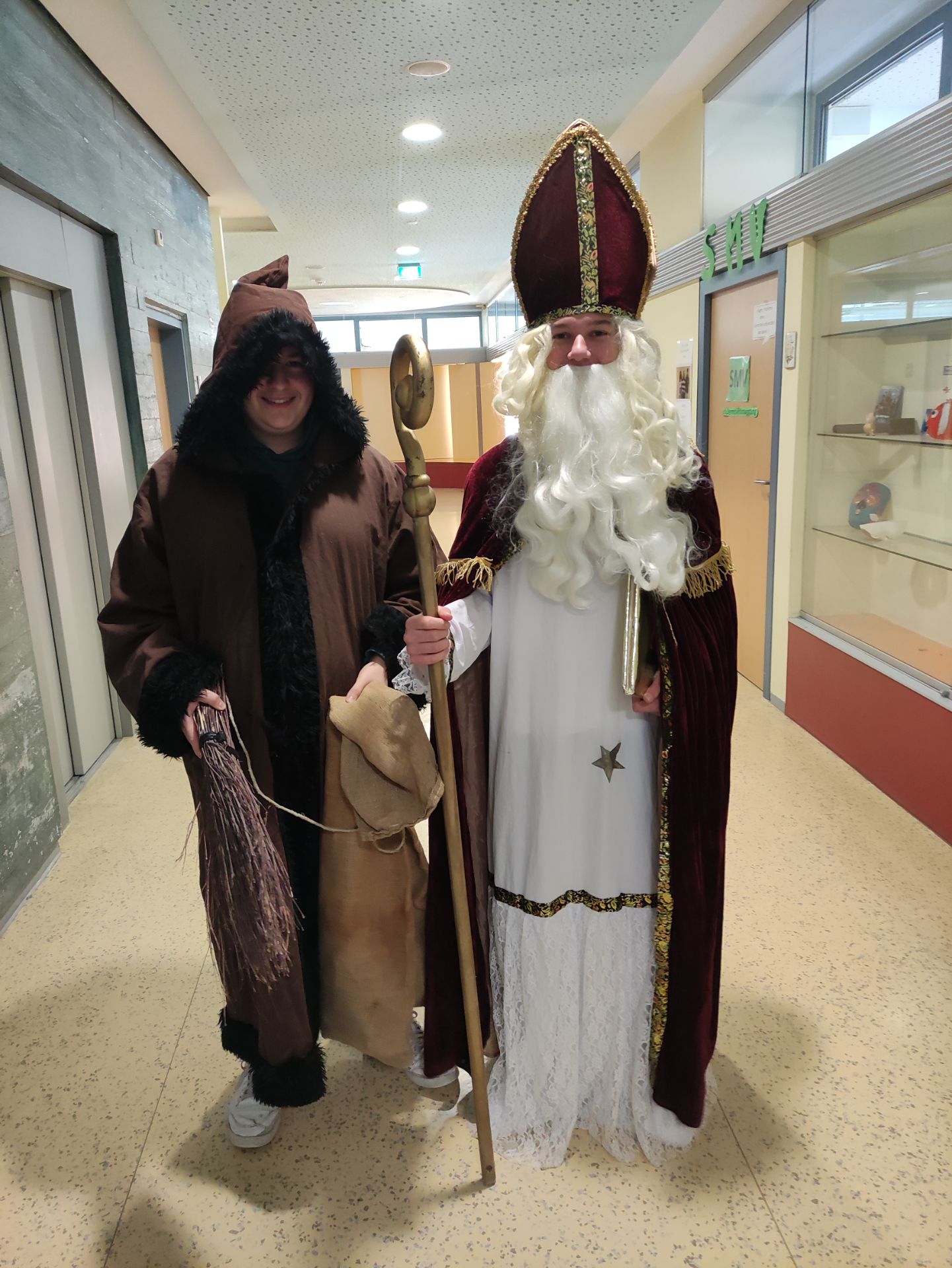 Am 06.10. zog der Nikolaus mit dem Krampus, Engeln, fleißigen Elfen-Helfern und seinem Lieblingsrentier im Gefolge in der 5. Jahrgangsstufe von Klasse zu Klasse und verteilte seine Geschenke.