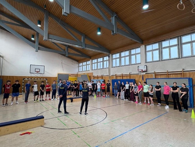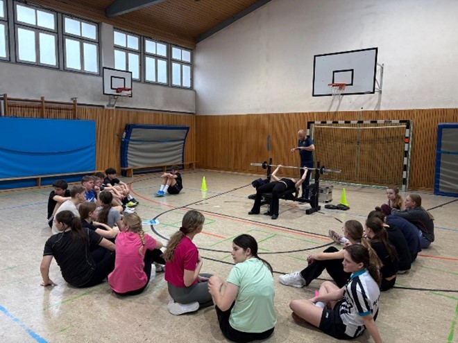 Für die Neuntklässler der Realschule Waldkraiburg stand eine außergewöhnliche Sportstunde auf dem Programm: Sie absolvierten den polizeilichen Sporttest – eine Prüfung, die alle Bewerberinnen und Bewerber bestehen müssen, um eine Ausbildung im bayerischen Polizeidienst beginnen zu können. Der Test umfasst vier Disziplinen: Kleinbankspringen, Bankdrücken, Pendellauf und den Cooper-Test.
